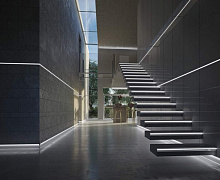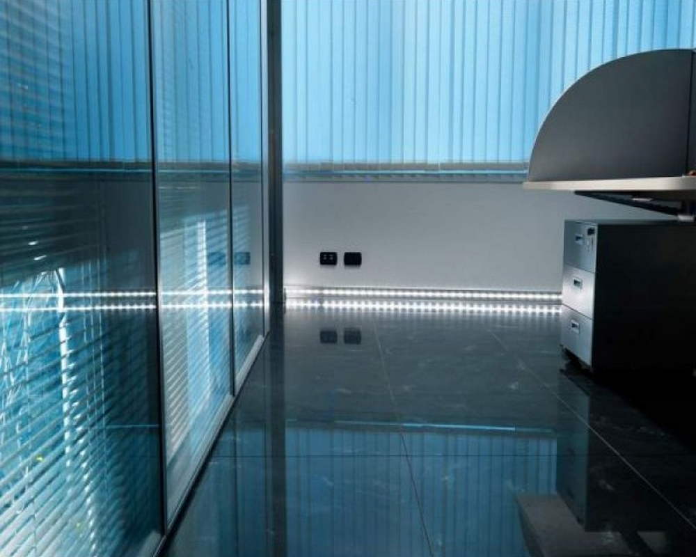 Плинтус имеет специальную матовую ПВХ вставку для светодиодной ленты. У плинтуса нет низа или верха, его можно установить той стороной, которая больше нравится: либо светодиодная лента будет ближе к полу, либо дальше от пола. Полость, где располагается лента, можно закрыть светорассеивающей вставкой, чтобы свет был мягким. Или можно оставить пространство открытым, чтобы свет был более жестким. Сама вставка идет в комплекте.
