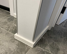 Особенности монтажа: для плинтуса Дёллькен из ХДФ существует возможность оформить наружный угол без разрыва облицовочной пленки. Для этого вам понадобится гильотина, с помощью которой оформляется внутренний угол, наружный, стык и заглушки для плинтуса. Далее Дёллькен просто крепится к стене на жидкие гвозди или термопистолет. Гильотину можно взять под залог в нашем розничном магазине.