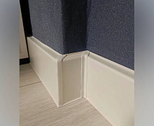 Особенности монтажа: плинтус Идеал Классик крепится к стене на монтажную планку при помощи дюбелей за кабель-канал, после этого кабель-канал закрывается. Для оформления внутренних и наружных углов используется специальная удобная фурнитура.