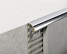 Способ монтажа: профиль промазывается клеем, устанавливается на стену или пол, а затем укладывается плитка. Окантовочный профиль легко можно подрезать до нужной длины с помощью ножовки по металлу.