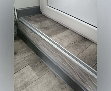 Способ монтажа: алюминиевый порожек без вставки крепится в проем между двумя напольными покрытиями или на ступени при помощи саморезов (идут в комплекте). Затем прорезиненную ПВХ вставку нужно нагреть строительным или обычным феном, либо подержать в горячей воде, чтобы материал стал мягче и легче вошел в паз профиля.