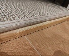 Способ монтажа: алюминиевый порожек крепится в проем между двумя напольными покрытиями на саморезы.