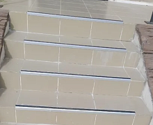 Способ монтажа: алюминиевый порожек без вставки крепится на ступени при помощи саморезов (идут в комплекте). Затем прорезиненную ПВХ вставку нужно нагреть строительным или обычным феном, либо подержать в горячей воде, чтобы материал стал мягче и легче вошел в паз профиля.